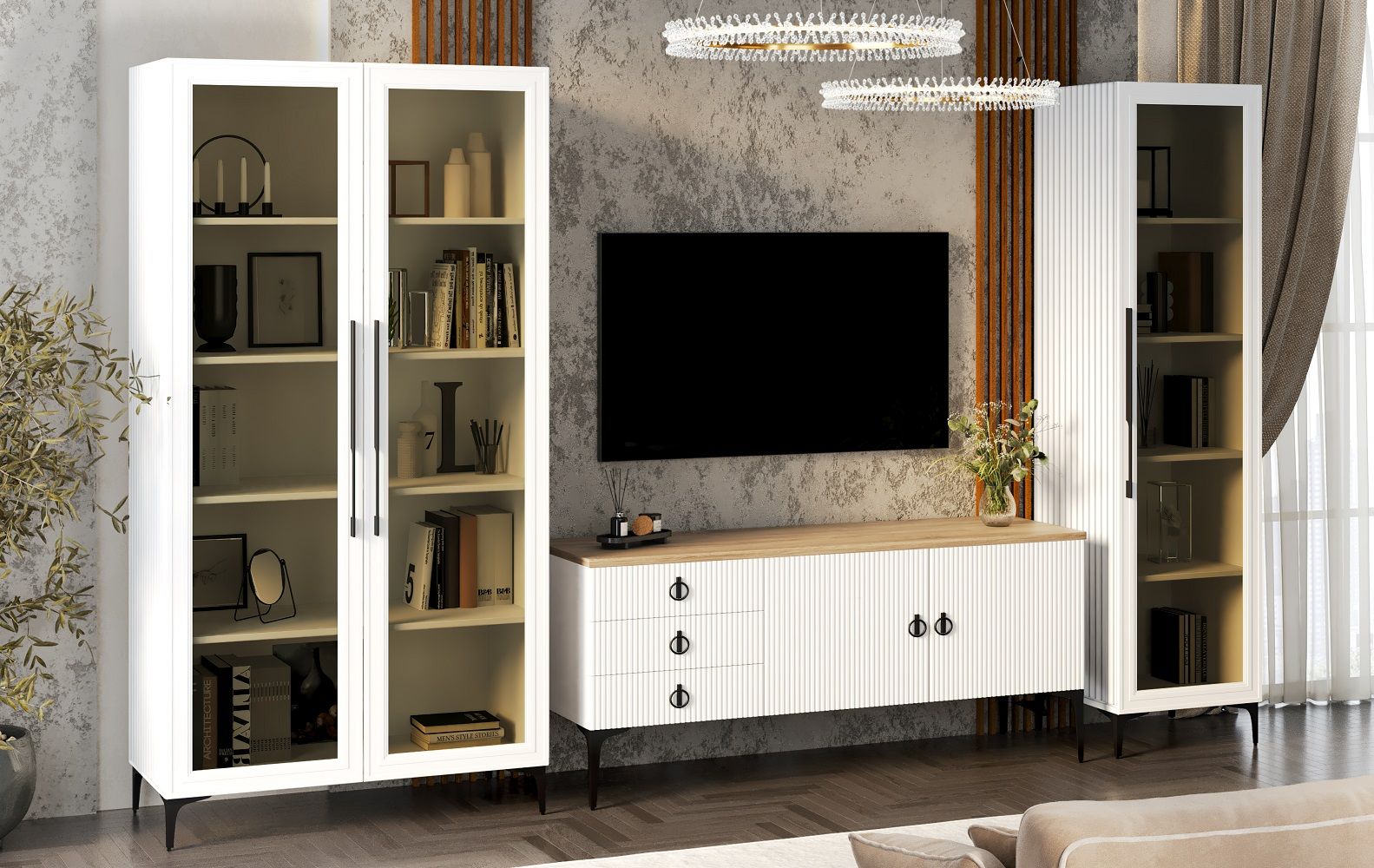 Каждая деталь тщательно продумана, чтобы подарить вам не только максимальный комфорт и эстетическое удовольствие, но и уверенность в высоком качестве мебели. Корпуса и столешницы модулей выполнены из ламинированной древесной плиты европейского качества, Фасады из природного МДФ задекорированы рельефной фрезеровкой и авторский стиль фабрики ЭРА — это финишное покрытие матовая итальянская эмаль ярко серого цвета.
