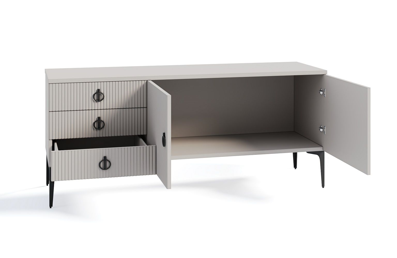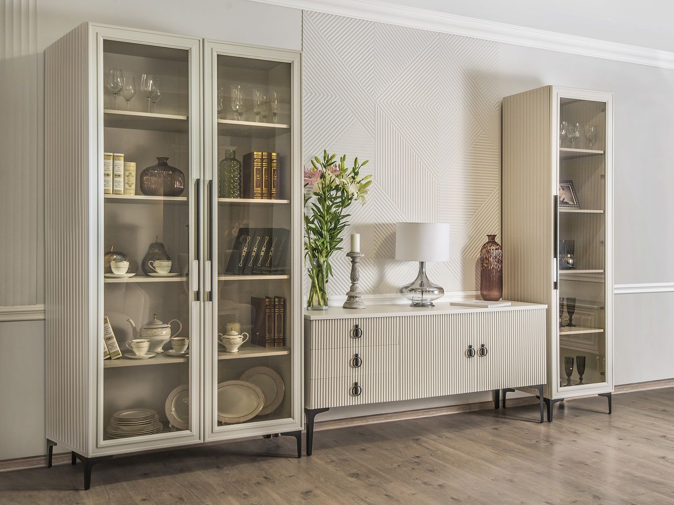 Каждая деталь спальни тщательно продумана, чтобы подарить вам не только максимальный комфорт и эстетическое удовольствие, но и уверенность в высоком качестве мебели. Корпуса и столешницы модулей выполнены из ламинированной древесной плиты европейского качества, Фасады из природного МДФ задекорированы рельефной фрезеровкой и авторский стиль фабрики ЭРА — это финишное покрытие матовая итальянская эмаль ярко серого цвета.