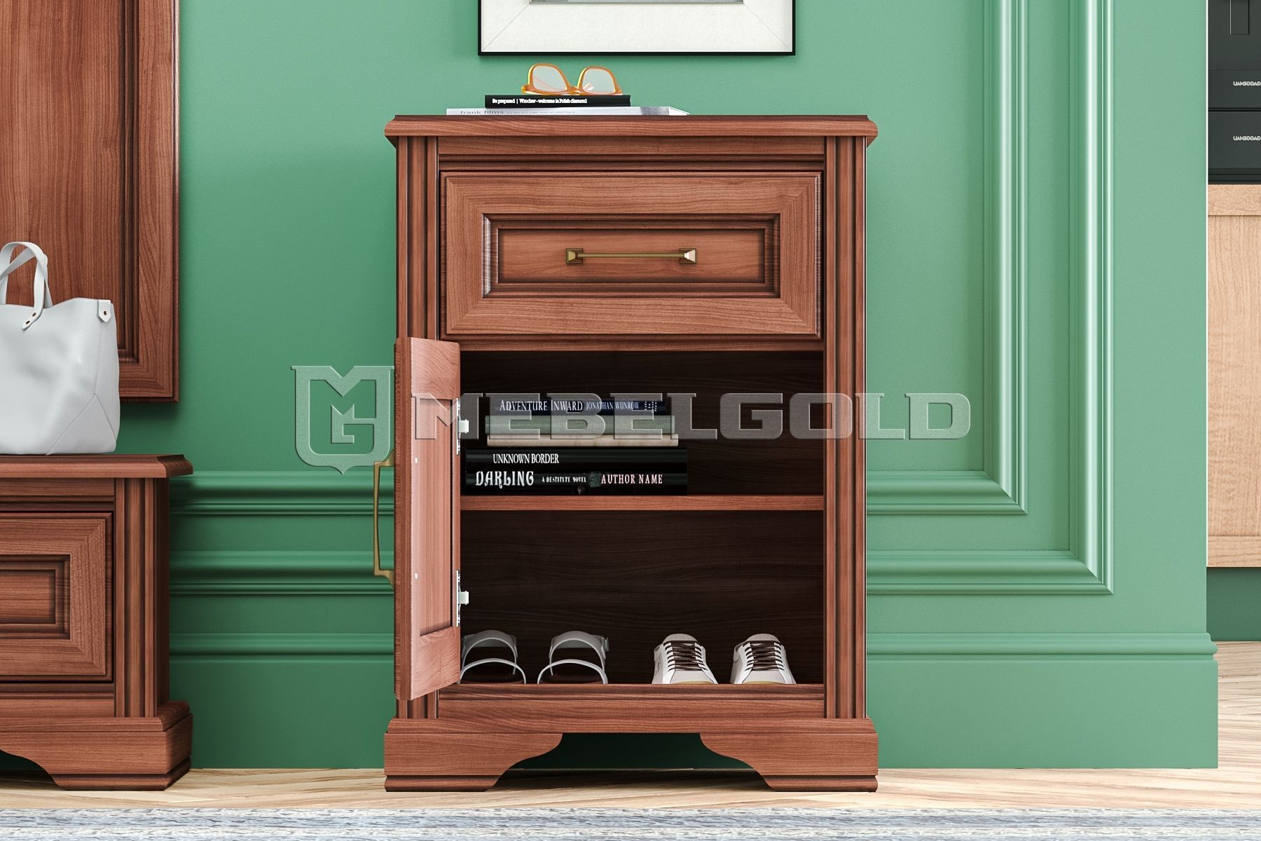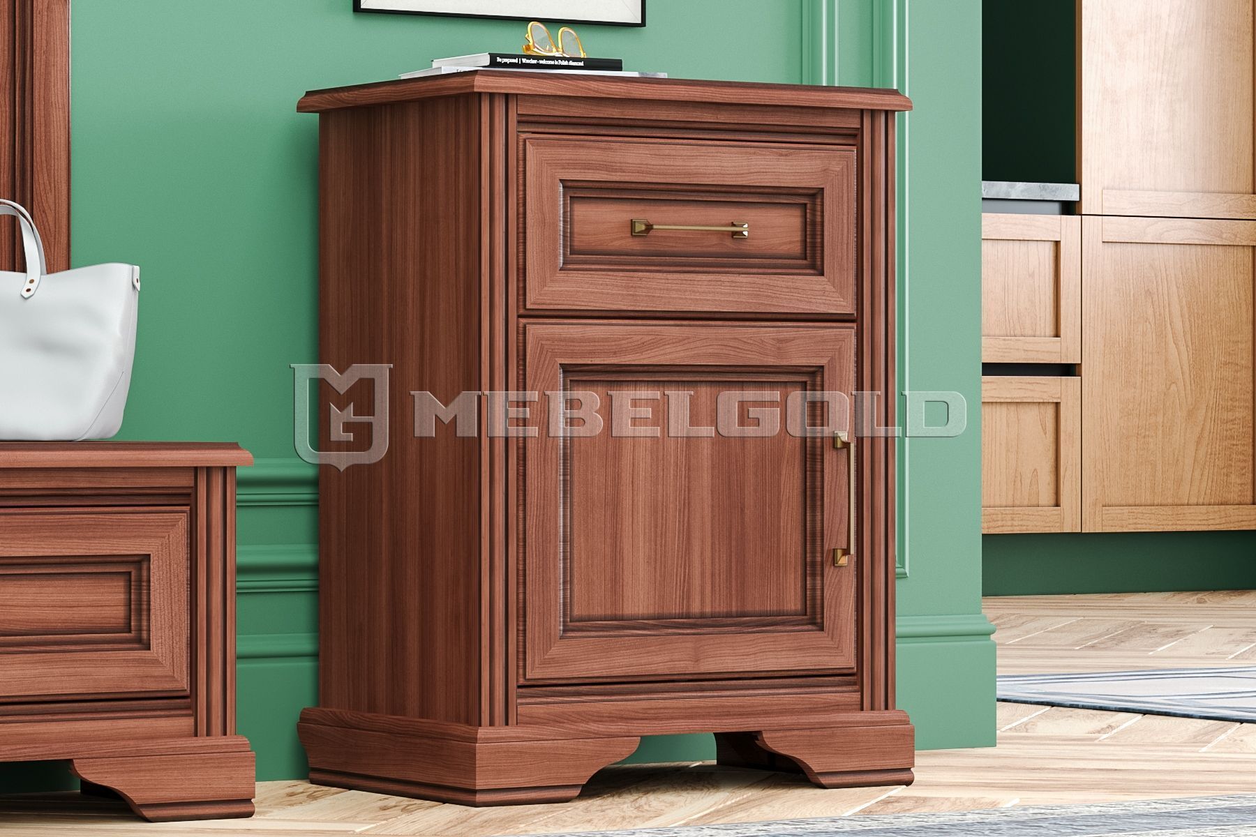 Небольшая тумба Stylius с изящными ручками и состаренными фасадами – выбор классических и неоклассических интерьеров.