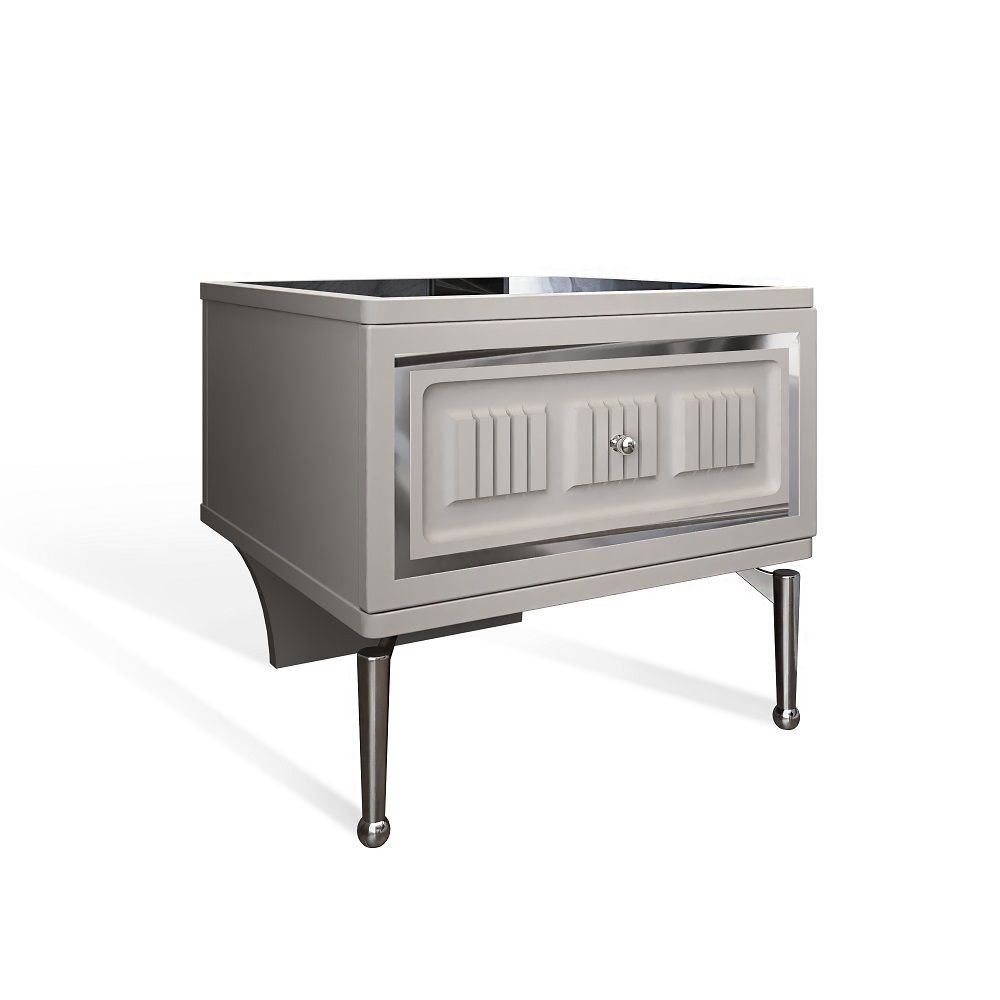 Прикроватные тумбочки с эффектом парения, туалетный стол на лёгких металлических опорах с топами из крашеного итальянской эмалью МДФ с модным декором стеклянной бронзированной поверхностью выгодно подчеркнут стиль спальни. Спальня оснащена современными европейскими механизмами с доводчиками.