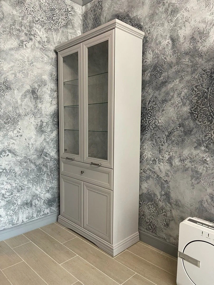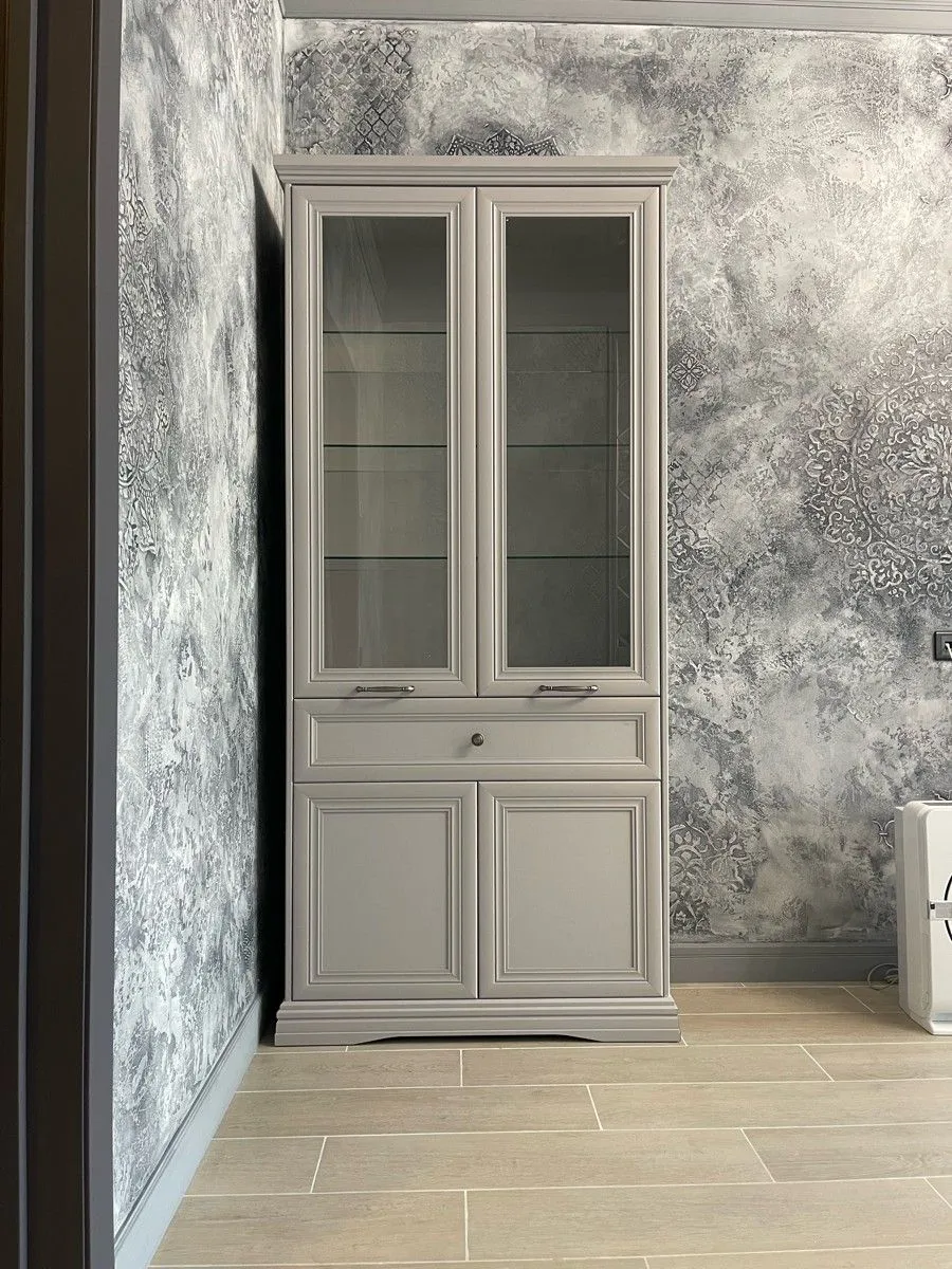 Идеально вписался в интерьер. Подробная и понятная инструкция, каждая деталь пронумерована, без проблем собрали сами. Краска на ощупь прям бархатистая. Качественная фурнитура, все дверки с доводчиками, ящик тоже. Нижние открываются от нажатия. Выглядит вживую конечно очень эффектно ) буду докупать остальные из этой серии.