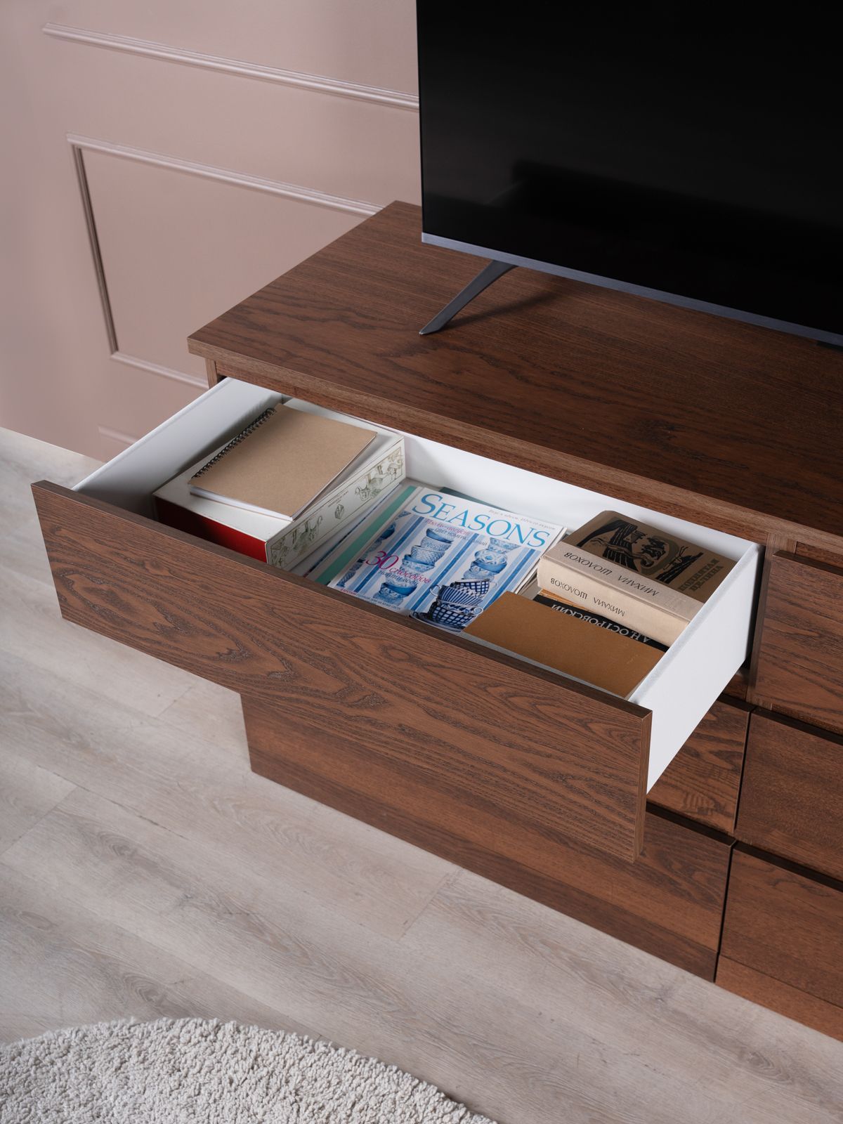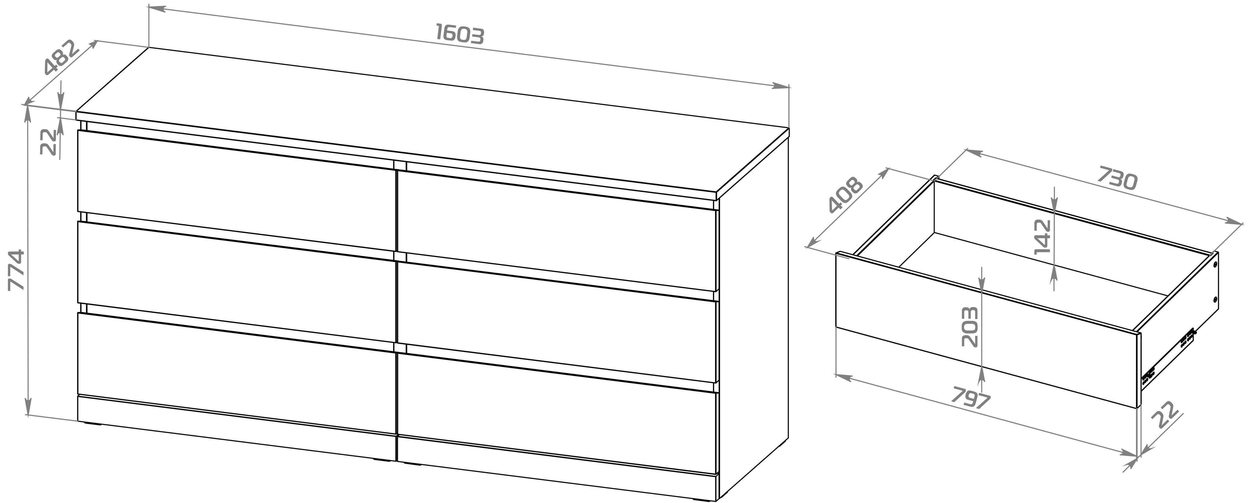 Комод ВАРМА ПРАЙМ 6Д комод 160x77x48— элегантность и качество в каждой детали! Серия мебели ВАРМА вдохновлена популярными сериями MALM и BILLY от IKEA, и станет идеальным дополнением вашей квартиры. Лаконичный дизайн комодов гармонично впишется в любой интерьер, а компактные размеры не займут много места. Почему выбирают комод ВАРМА 6Д комод 160х77х40? Комод ВАРМА 4 ящика может служить не только отличным комодом, но и прекрасной ТВ тумбой, максимальная рекомендованная нагрузка на столешницу 15 кг! Ширина столешницы 160 см позволяет использовать поверхность комода эффективно – разместить телевизор с большой диагональю, PlayStation, фоторамки и вазы, а вместительные 6 ящиков позволяют организованно хранить множество вещей: одежду, белье, аксессуары, книги, документы и другие предметы. Это особенно полезно для больших семей или тех, кто ценит порядок и хочет максимально эффективно использовать пространство. Комод ВАРМА представлен в трех вариантах: Белый цвет покрыт прочной эмалью. Эмалевое покрытие создает гладкую, ровную поверхность с приятным матовым блеском, добавляя мебели изысканности и визуальной легкости. Оно устойчиво к царапинам, влаге и выгоранию, что делает комод долговечным и простым в уходе. Цвета \"ясень коричневый\" и \"беленый дуб\" покрыты натуральным шпоном. Шпон сохраняет естественную текстуру древесины, придавая комоду благородный внешний вид и добавляя интерьеру уют и теплоту. Такая мебель выглядит дорого и стильно, оставаясь при этом доступной по цене. Доводчики обеспечивают плавное и тихое закрывание ящиков. Направляющие полного выдвижения позволяют выдвигать ящик целиком, предоставляя полный доступ к его содержимому, упрощая поиск вещей и организацию внутреннего пространства ящика.